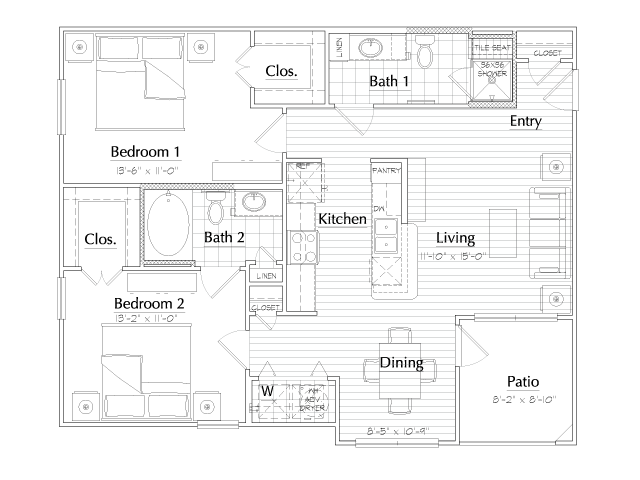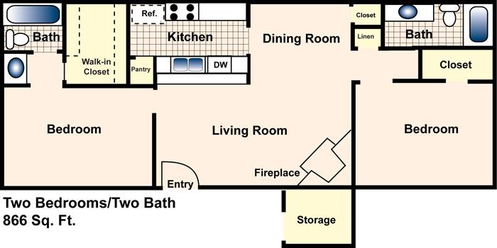 Unique floor plan designs are included among the unfurnished one and two bedroom garden style apartment homes.