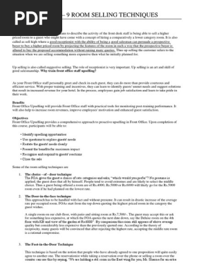 Other room selling techniques might include upselling cross selling packages promotions re marketing and local partnerships.
