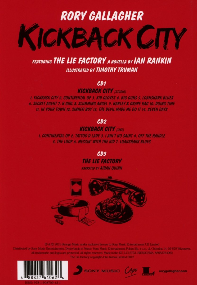Kickback city was conceived by gallagher s brother dónal to celebrate the guitarist s lifelong love of hard boiled noir fiction he often cited its themes and references in his songs.