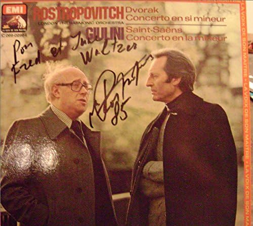 Autograph Dvorak Saint Saens Cello Concertos Lpo Giulini Lp Signed By Rostropovich Amazon Com Music