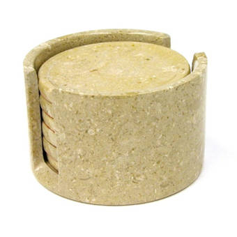 Displaying the elegance of the earth this set of six round coasters is carved from natural onyx displaying hues of ivory and brown.
