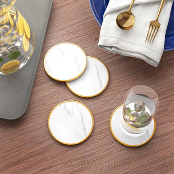 Buy top selling products like thirstystone marble square coaster collection and jodhpuri white marble coaster with steel monogram set of 4.