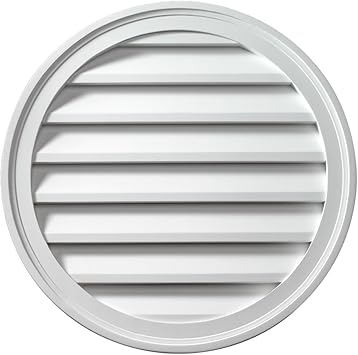 Ekena millwork 26 in w x 26 in h round gable vent 31 in w x 31 in h frame size.