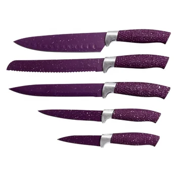Royalty line 5 piece marble coating knife set marble coating antibacterial does not leave stain does not keep odors of food soft touch handle does not slip.