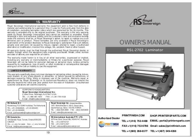 The royal sovereign rsl 2702s 27 heated roller laminator is compact in size but a work horse in every respect the rsl 2702s features digital controls independently heated silicone rollers and multiple set up memory channels.