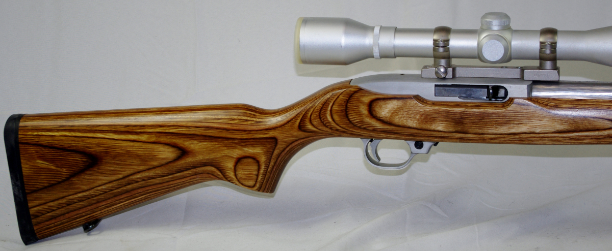 Ruger model 1256 k10 22 semi automatic rimfire rifle 22 long rifle caliber 20 heavy barrel 10 round capacity crossbolt safety standard trigger black laminate stock stainless steel clearmat finished barrel and receiver 37 overall length 5 pounds.