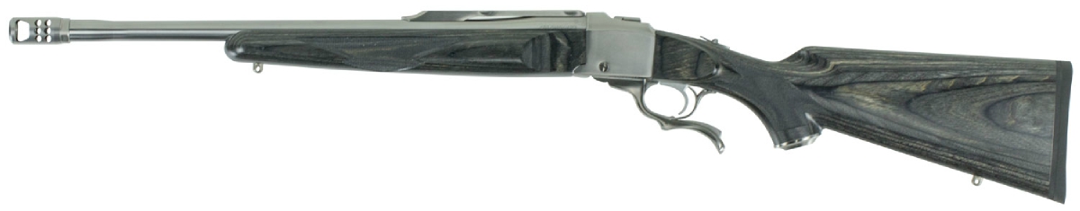 Designed with a 1 shot capacity the ruger no 1 laminate 450 bushmaster falling block rifle is made with a stainless steel barrel and receiver.