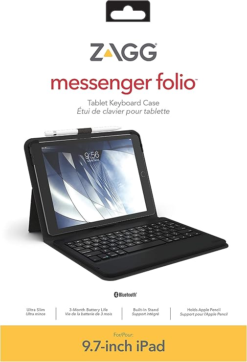 Zagg rugged book keyboard folio case for apple ipad 5th gen 9 7 inch ipad pro air and air 2 black user rating 4 6 out of 5 stars with 641 reviews.
