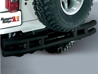 Rugged ridge dual tube rear bumpers are made from 3 round steel and are e coated to ensure a rust free finish.