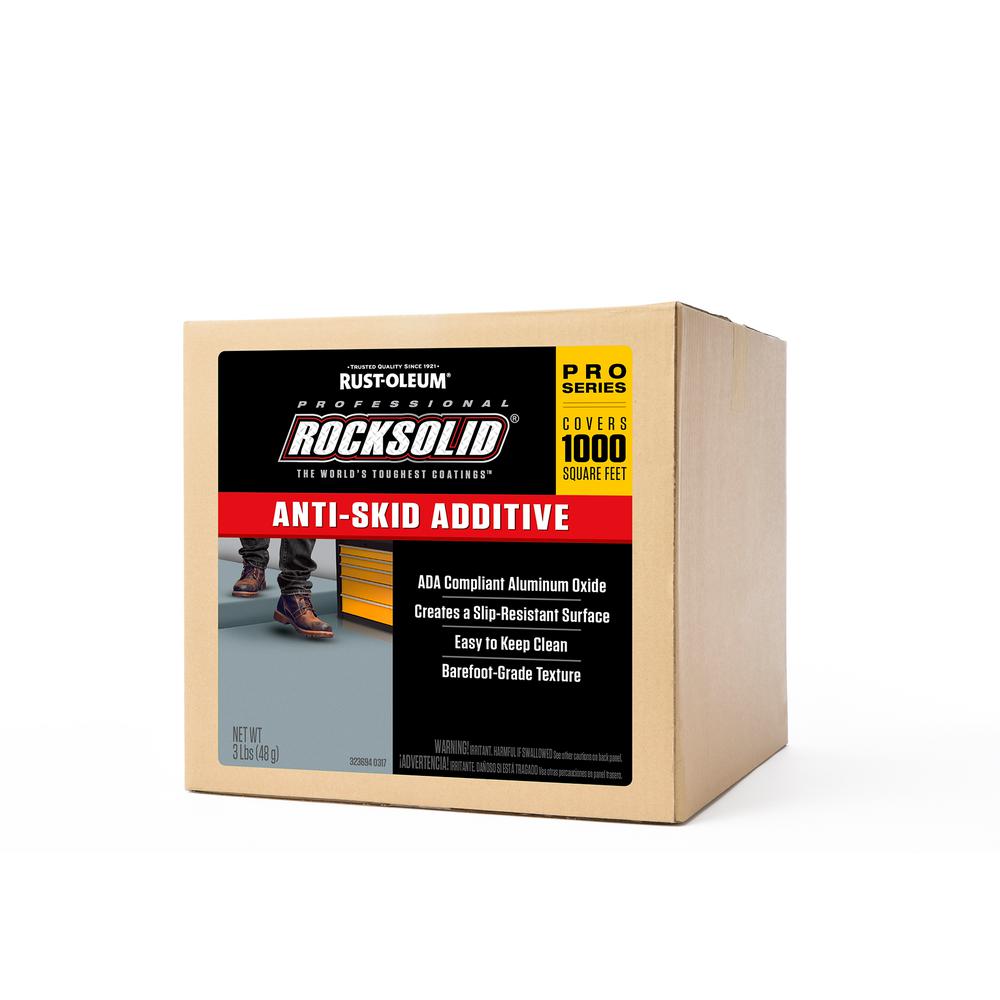 Rust oleum anti skid additive when mixed with epoxy latex or oil based paints stains or sealers creates a skid resistant coating for concrete wood metal or fiberglass made from aluminum oxide rust oleum anti skid additive is the hardest most durable additive available.