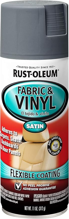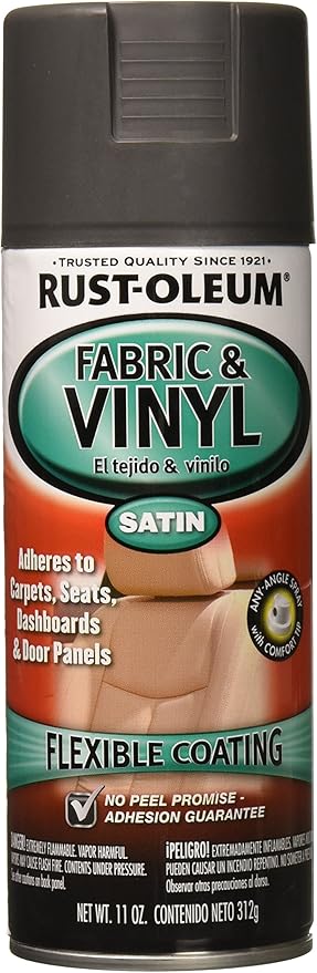 Rust oleum fabric vinyl spray is a flexible coating that restores color on vinyl simulated leather and some fabrics.