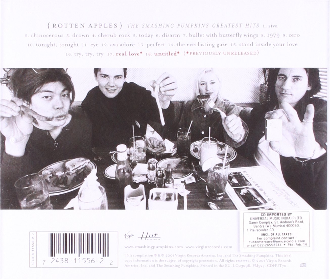 Rotten apples the smashing pumpkins greatest hits as titled on the album s cover is a greatest hits compilation album by alternative rock band the smashing pumpkins in the us it was released in 2001 along with a bonus disc titled judas o the album s concluding track untitled was the pumpkins final recording before their breakup completed in the days leading up to the band s.