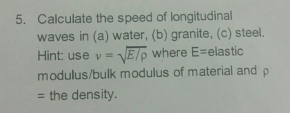 I calculate the speed of longitudinal waves in a water b granite and c steel step by step solution.