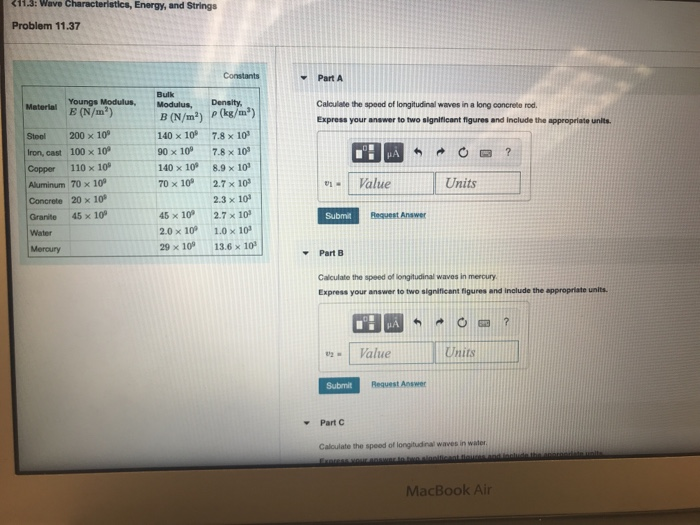 Either way i simply looked up the speed of sound in each of the substances sound is a longitudinal wave.
