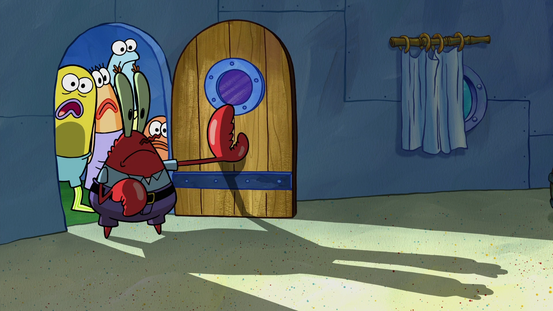 The episode begins at the krusty krab.