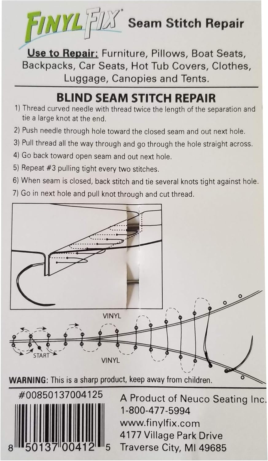 Finyl fix seam stitch repair kit vinyl fabric leather and heavy canvas includes 2 heavy duty curved stitching needles black white thread 4 2 out of 5 stars 101.